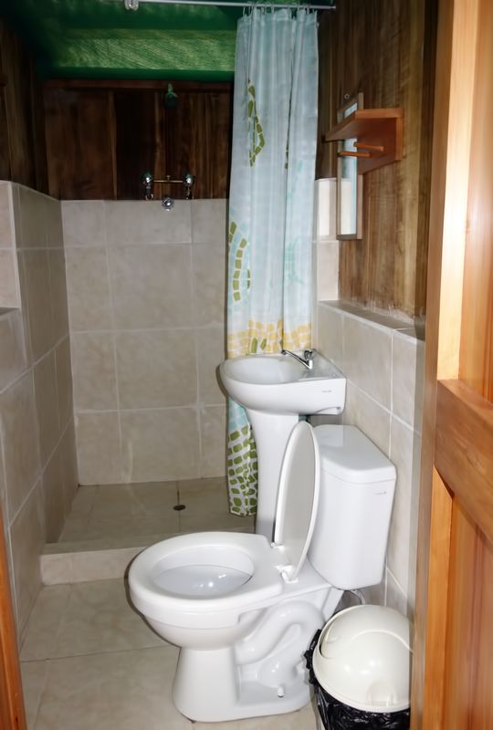 Baños privados en las cabañas, con ducha con agua caliente a gas.
