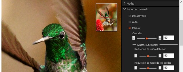 sea de luminancia (luminosidad) o crominancia (color). Lo recomendable es hacer zoom hasta el 100% o más, y aplicar la reducción de ruido y verificar su efectividad
