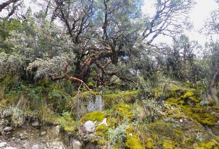 En los bosques altos luego de pasar las lagunas. Continuando por la carretera y al pasar las lagunas, en los bosques de polylepis y alisos, entre los 3,800 a 4,200 metros es posible encontrar especies como: Plain-tailed Warbling-finch, White-cheeked Cotinga, Baron's Spinetail, Ancash tapaculo, además al Tit-like Dacnis, Giant Hummingbird, Andean flicker, Black-tailed Trainbearer. Después de cruzar el abra, el bosque de altura continúa, y está mejor conservado, encontrándose las mismas especies de bosques altos. Puede ver la lista de especies completa en eBird aquí. La vegetación predominante son amplios bosques de polylepis de mediana altura y arbustos. Asimismo hay zonas de arboles del género Alnus, y la Puya Raymondi. También se puede encontrar mamíferos comp la taruca, el venado gris, la vicuña, el puma, el gato andino, el zorro andino, la vizcacha y el zorrillo, entre otros. |