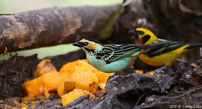 Además de muchas tangaras en los árboles alrededor como el Paradise Tanager, Orange-eared Tanager, Beryl-spangled Tanager, Spotted Tanager.