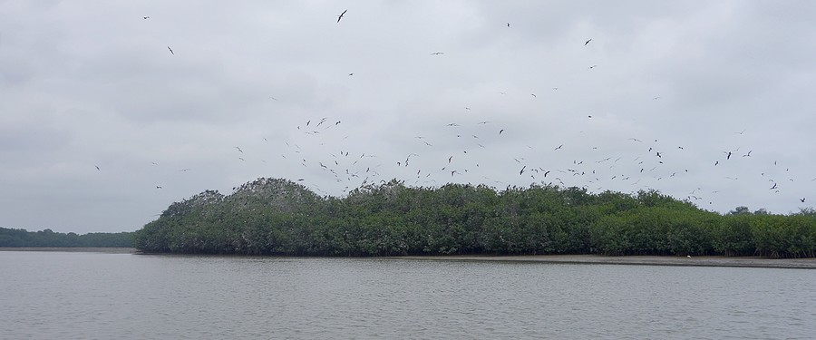 Esta riqueza de vida marina favorece la presencia de muchas aves, que se alimentan en las amplias playas de arena de los islotes y anidan en los bosques costeros de mangle. La observación de aves se realiza recorriendo en bote los bordes de los islotes.