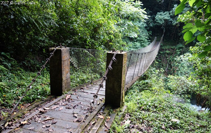| El camino hacia el lek del gallito de las rocas tiene un puente colgante. |